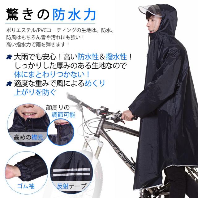 レインコート 自転車 バイク ロングポンチョ 雨具 通勤 通学 フリーサイズ 男女兼用