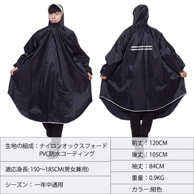 高い耐久性を誇るオックスフォード生地とPVC防水コーティングのポンチョ レインコート!