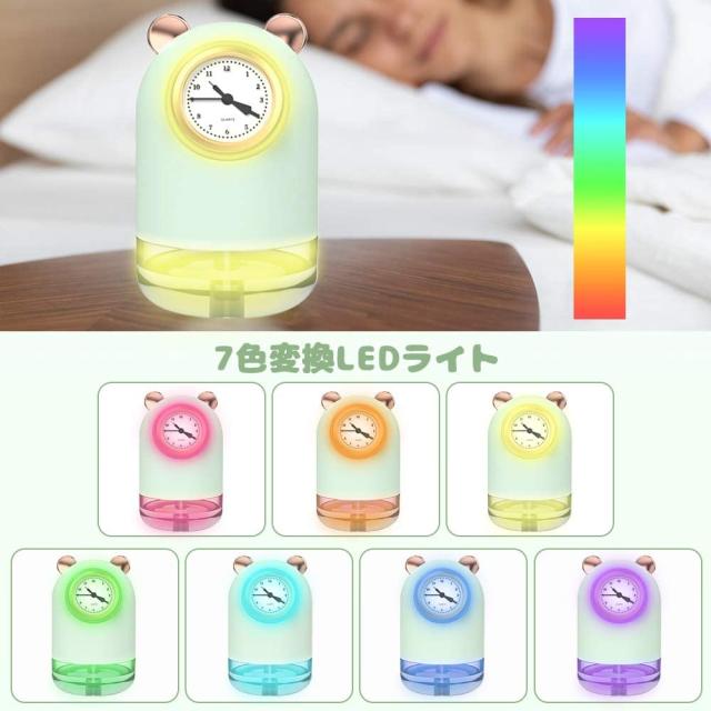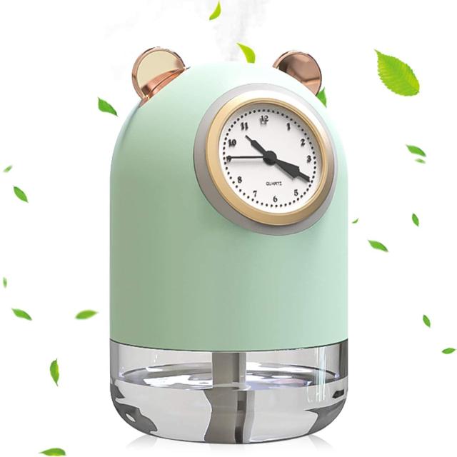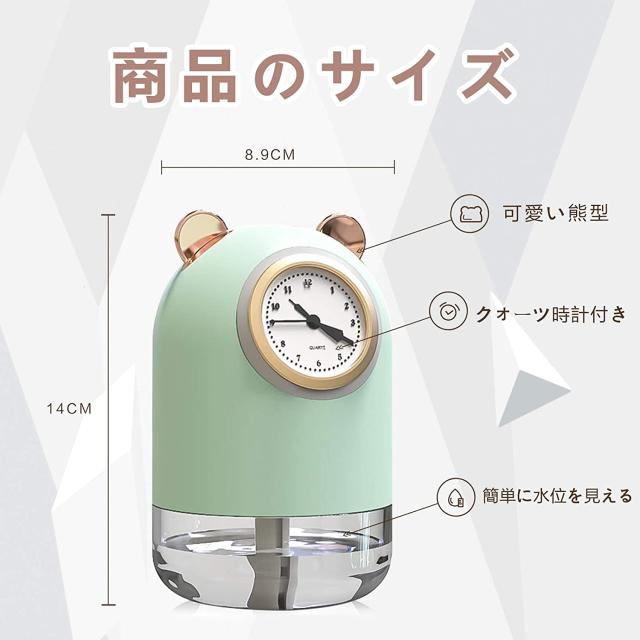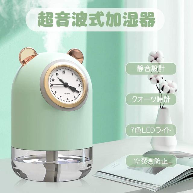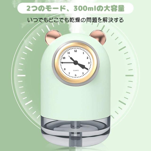 卓上加湿器 USB給電 超静音 次亜塩素酸水を入れる 大容量300ml 小型 クォーツウォッチ付き ホームミニクリエイティブカー加湿器 サイレントLed雰囲気ナイトライト 省エネ 乾燥/花粉症対策 【最新版 超音波式クォーツ時計加湿器】