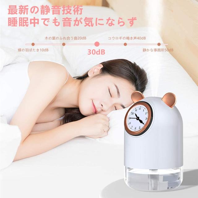 【超音波式&超静音&クォーツウォッチ付き】 超音波で加湿強度が大きく、加湿が均一と省エネ性能に優れています。クォーツ時計加湿器は消音技術採用して、使用中は静かな低騒音仕様(30dB以下)ので睡眠中でも、音が気にならずにご利用頂きます。また、クォーツウォッチ付き、多機能でより便利生活を楽しめる。