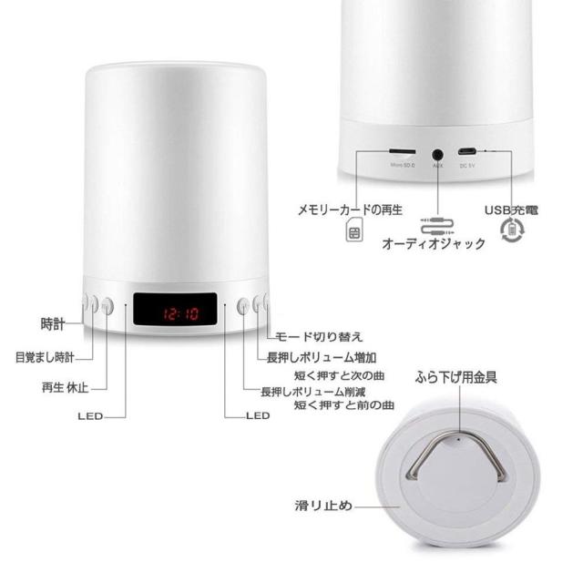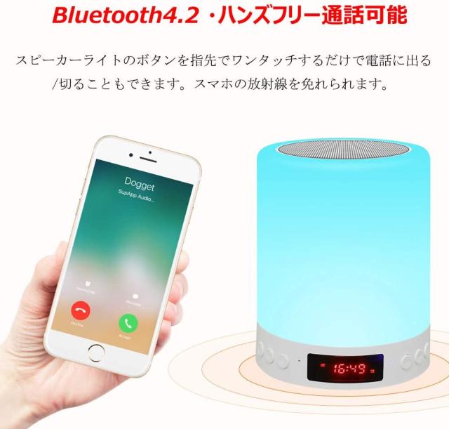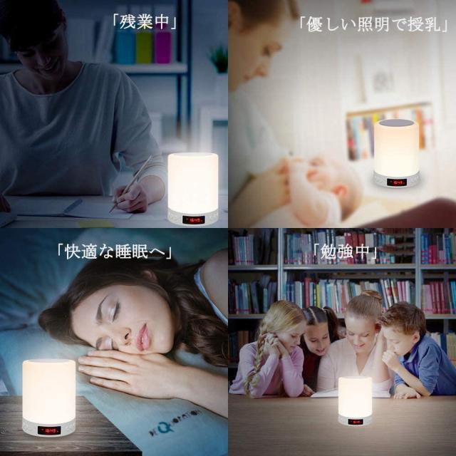 最新型デザインで多機能に集めて、LEDライトだけではなく、Bluetooth機能が搭載され、スピーカーとして同時にベッドサイトランプを使えます。