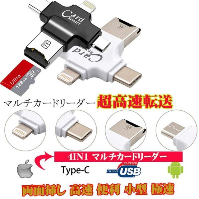 マルチカードリーダー iphoneデータ保存 双方向でのデータコピー可能 SDカードリーダー USB iOS Android対応 容量不足 メモリーカードリーダライタ 高速 データ転送 写真 動画 音楽 直接転送可能 コンパクト Type-C
