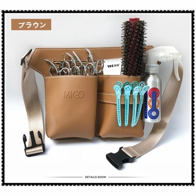 シザーバッグ シザーケース ベルト ポーチ ショルダーバッグ 斜めがけ ボディバッグ ハサミ5丁収納 美容師バッグ