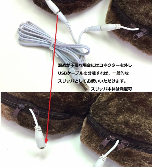 【USB給電】 USB接続すると加熱パッドがあたたまる、冬におすすめのスリッパです。 ノートパソコン、携帯バッテリー、スマホ充電器、車内電源などから安全で手軽な接続で給電できます。 モバイルバッテリーと繋がれば、便利に移動できます。車の充電器を使用して、車でリラックスしているときに暖かい靴を保つこともできます。