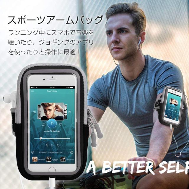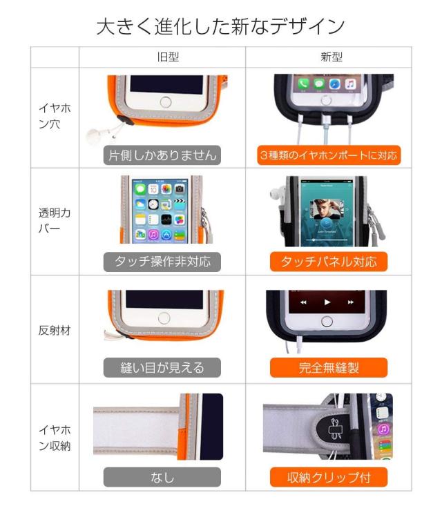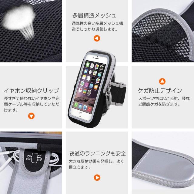 改良版 ランニング アームバンド スマホ スポーツ iPhoneX iPhone8 plus Galaxy S8 など6.0インチまでに対応 夜間反射 タッチOK