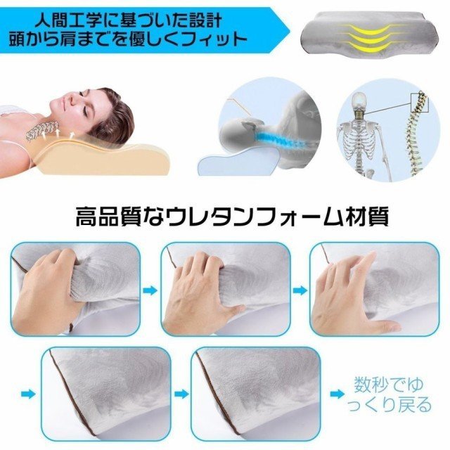 【人間工学に基づいた設計】高品質なウレタンフォーム材質、頭から肩までを優しく支えて設計された形状、いつでも睡眠質を改善できる。生産元:CN