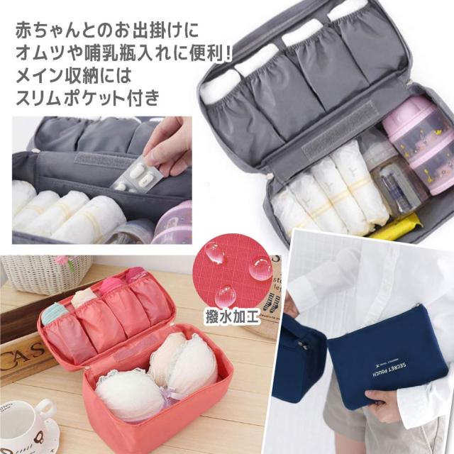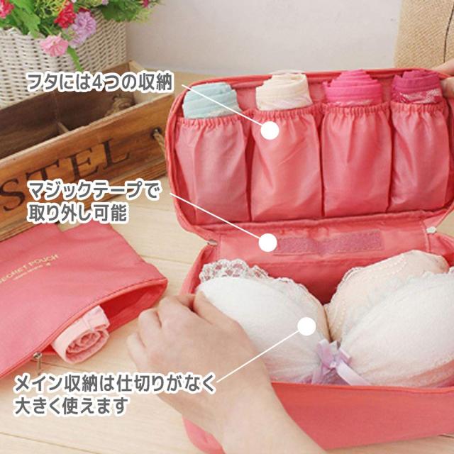 ランジェリーポーチ 下着 収納 旅行 ブラジャー ショーツ トラベル ケース ピンク