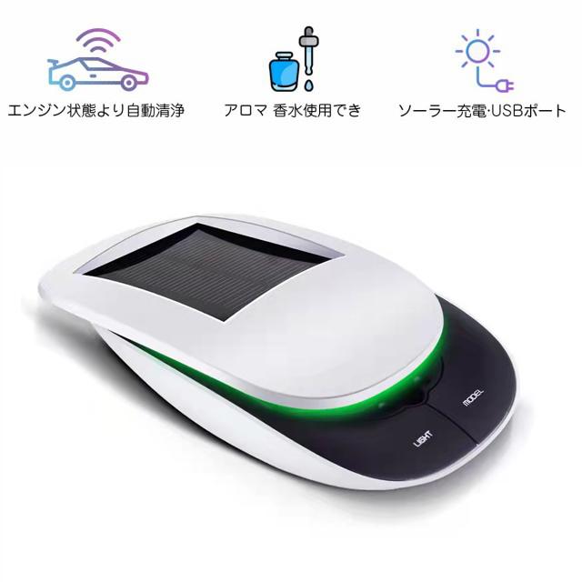 最新スマート 空気清浄機 車用 エンジン状態より自動清浄 ソーラーパネル/USB給電 アロマディフューザー搭載 超静音 イオン発生 除菌 消臭 シガーソケット付 複合型HEPAフィルター タバコ 花粉 アレル物質 PM2.5対策 微粒子99.98%除去 エアクリーナー
