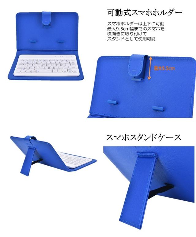 薄型 軽量 モバイルキーボード スマホ ホルダー レザー スタンド ケース付 iOS Android Win 各種OS対応