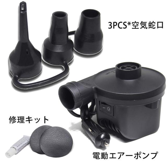 助っ人付属品がとても便利! 快適な空間をお過ごしいただく為のお助け付属品は、電動ポンプ、エアーピロー、サンシェード、修理用のパッチです。自動エアーポンプは車のシガーソケットに接続し、あっという間に膨らませられ、不便さを感じる事なく短時間で完了。