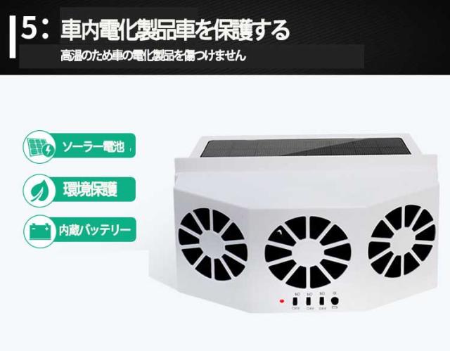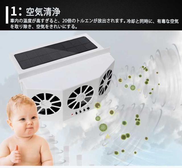 【多機能】内部の空気の清潔を保つために冷却、換気、デトックス、車の内部の電気部品の寿命長く、省エネ。太陽光発電、クリーンエネルギーを使用し、環境汚染を減らします。
