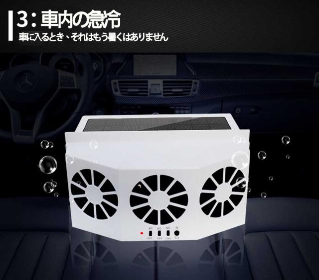 3つのファンは強いです。きれいな空気と停車中の車の外に熱風を吹き、あなたの帰りを快適な温度レベルを維持異臭や悪臭を放つ臭いに削除されます。車内の温度を下げると、快適になり、車内の電気機器の寿命が長くなります。