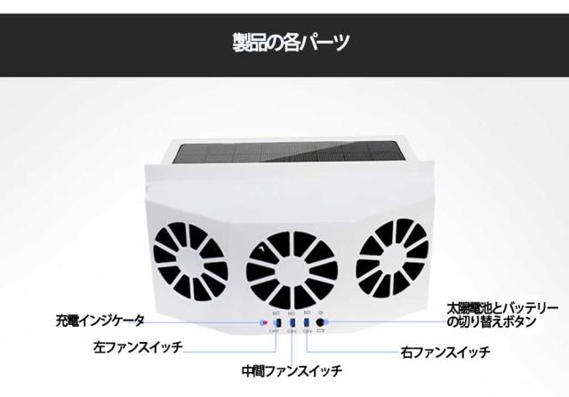 カーソーラーファン 換気扇 空気清浄機 3つのファンを装備 ダブル 車載 ファン 冷却空気 車内換気 熱気排出 充電機能搭載