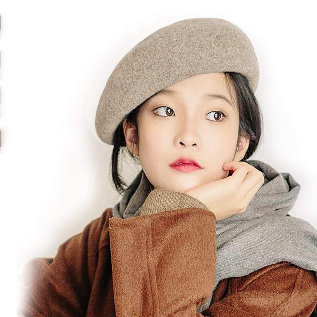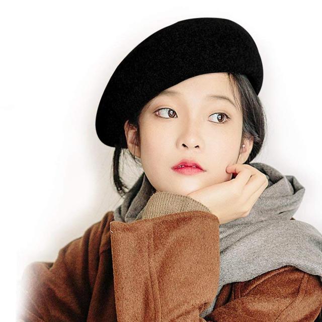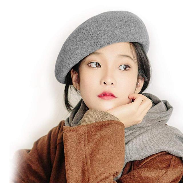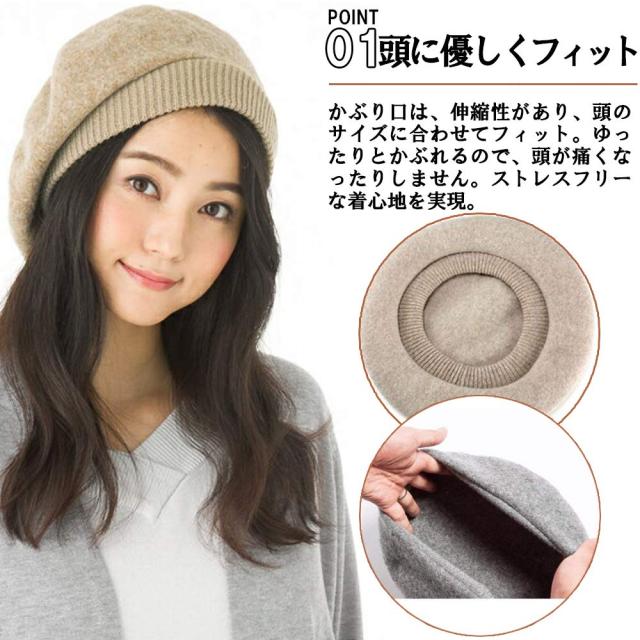 ベレー帽 レディース ウール フェルト 無地 フリーサイズ ファー 秋冬 帽子 小顔効果 ベレー