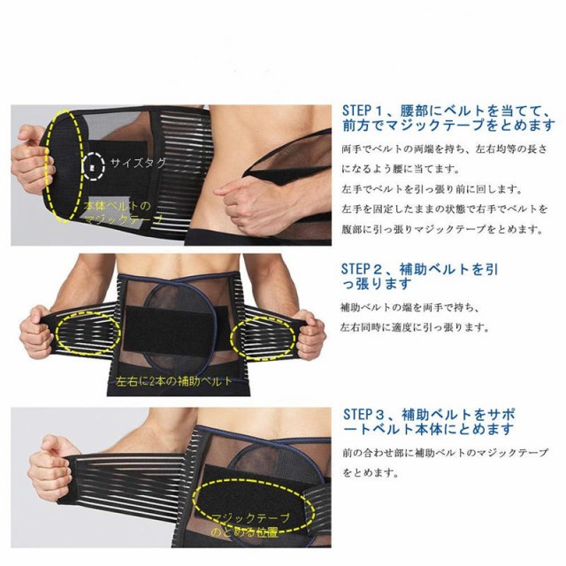 腰サポートベルト 腰痛ベルト コルセット 骨盤矯正 ダイエット 運動時の腰痛予防 通気性抜群 男女兼用 簡単着脱