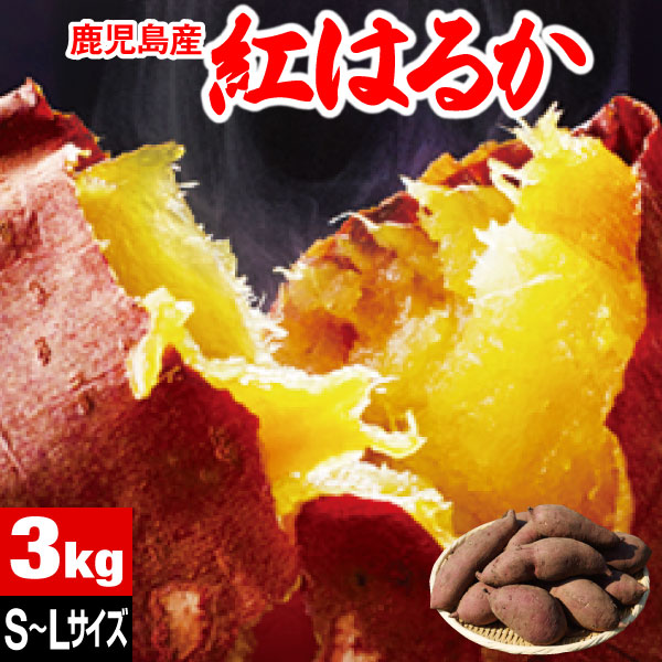 さつまいも 紅はるか 鹿児島 生芋 3kg 1箱 送料無料 S〜Lサイズ 土付き 美味しい 鹿児島県 美容 ギフト べにはるか サツマイモ 焼き芋に まとめ買い