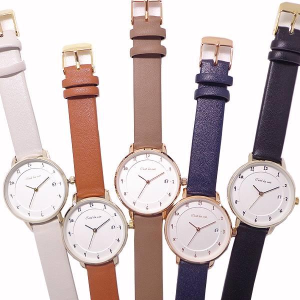 ◆1)グレー◆ ケース:ゴールド/文字盤:ホワイト/インデックス:ゴールド/針:ゴールド ベルト:グレー/尾錠:ゴールド ◆2)キャメル◆ ケース:ゴールド/文字盤:ホワイト/インデックス:ブラック/針:ブラック(秒針はゴールド) ベルト:キャメル(ブラウン系)/尾錠:ゴールド ◆3)ベージュ(濃)◆ ケース:ピンクゴールド/文字盤:ホワイト/インデックス:ピンクゴールド/針:ピンクゴールド ベルト:ベージュ/尾錠:ピンクゴールド ◆4)ネイビー◆ ケース:ピンクゴールド/文字盤:ホワイト/インデックス:ピンクゴールド/針:ピンクゴールド ベルト:ネイビー/尾錠:ピンクゴールド ◆5)ブラック◆ ケース:ゴールド/文字盤:ホワイト/インデックス:ブラック/針:ブラック(秒針はゴールド) ベルト:ブラック/尾錠:ゴールド |