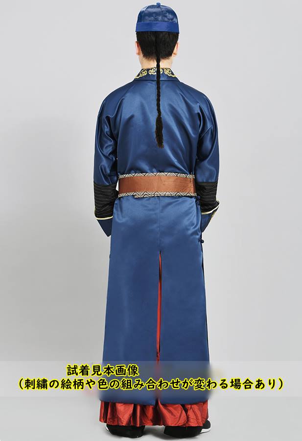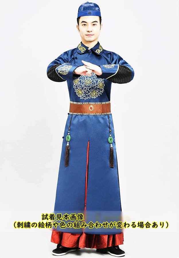 中国清朝服 満州王子服 古装武侠衣装 長袍 2(チャンパオ) サテン地 青色