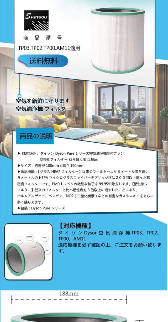 ダイソン 空気清浄機能付ファン 交換用フィルター Pure シリーズ 交換用フィルター TP03 TP02 TP00 AM11 用 互換品