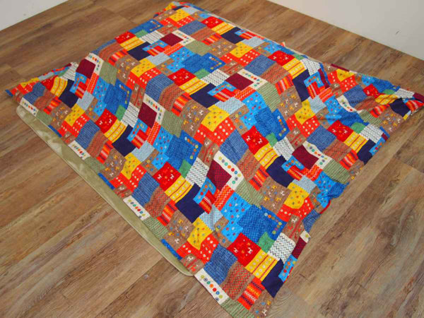 カラフルなパッチワーク風のデザインで、お部屋の雰囲気が明るくなります。多少汚してしまっても目立たないので、小さなお子様がいるご家庭にもお勧めです。