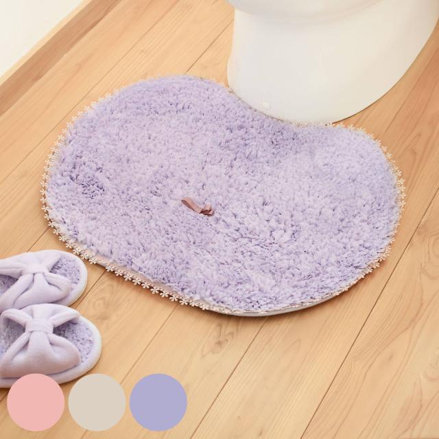 サテンのリボンに花モチーフのレースをあしらった、可憐なデザインのトイレマットです。落ち着いたスモーキーパステルカラーは、トイレ空間を上品な大人かわいい雰囲気にしてくれます。
