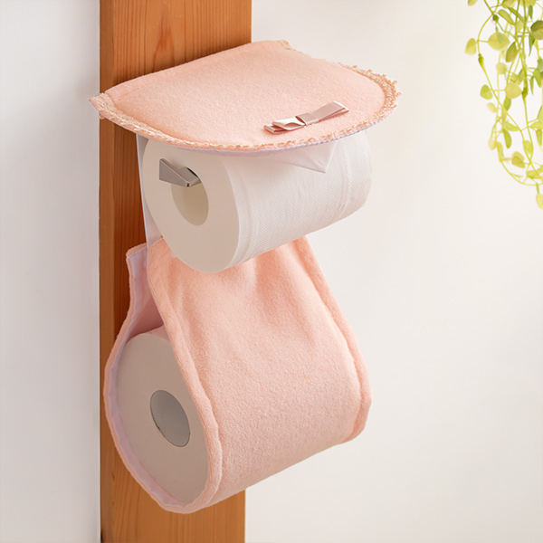 上品で可憐なデザインのペーパーホルダーカバーです。可愛く飾りながら、ペーパーやホルダーをホコリから守ってくれます。簡単に取り付けができ、予備のペーパーを1ロールストックできます。
