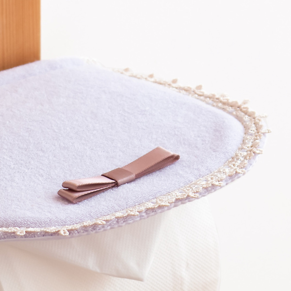 ワンポイントになるサテンのリボンに、縁には花モチーフのレースをあしらいました。落ち着いたスモーキーパステルカラーは、トイレ空間を上品な大人かわいい雰囲気にしてくれます。
