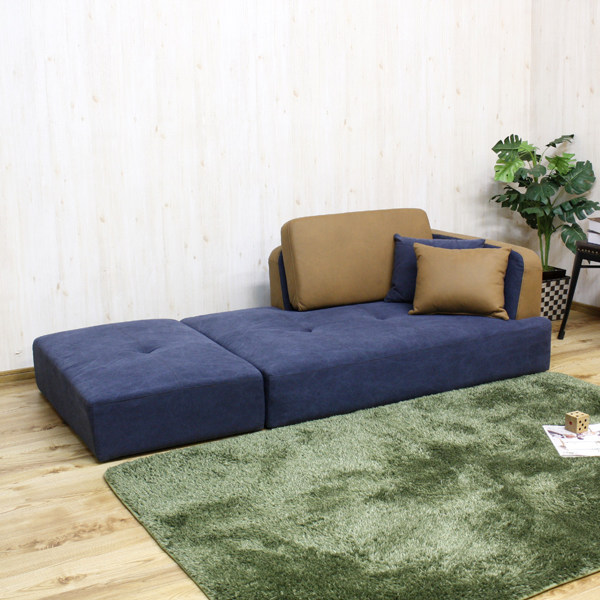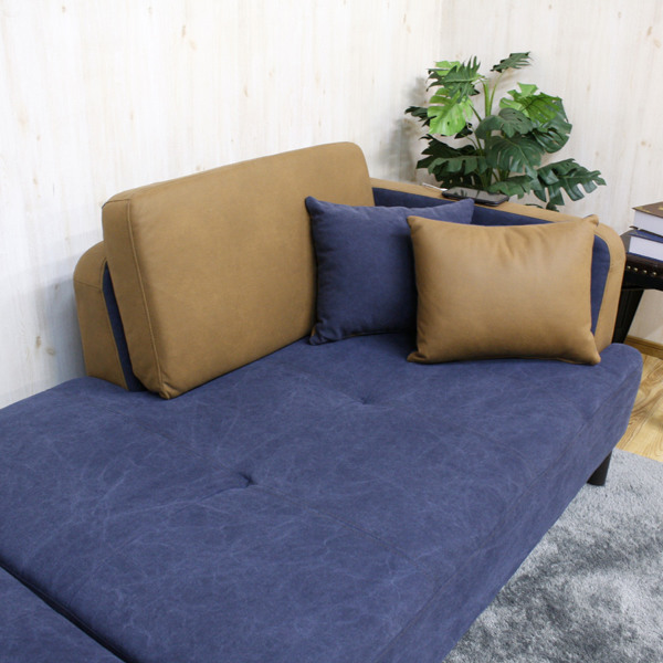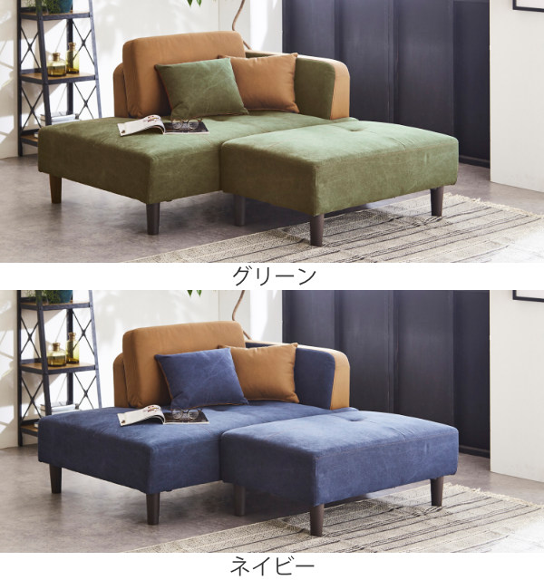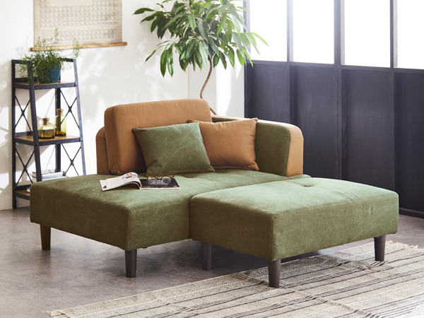 バイカラーが目を引く帆布生地のカウチソファ