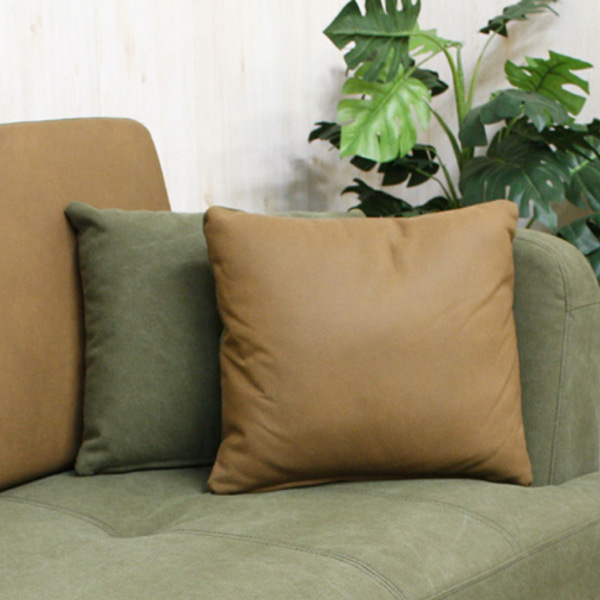 ソファのカラーと合わせた表裏色違いのクッションが2個付いていて、ソファ周りに統一感が出ます。