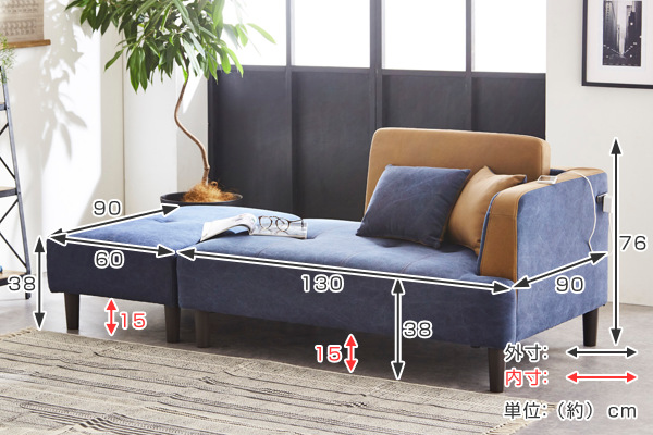 | サイズ | 約 幅130×奥行90×高さ76(cm) 座面高:約 38(cm) 脚高:15cm スツール:約 幅60×奥行90×高さ38(cm) |