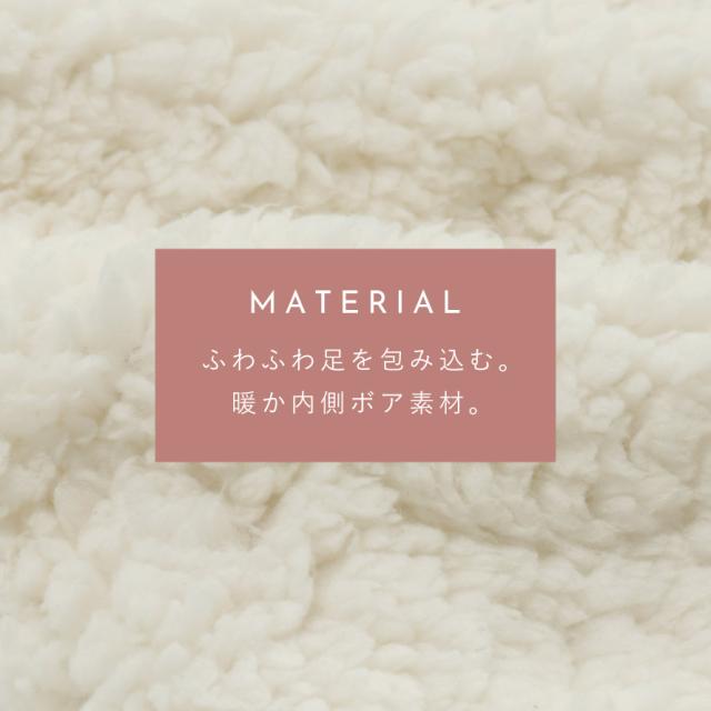裏側のボア素材はやわらかくて肌触りよく、優しく足を包み込みます。締め付けが少なく、就寝時に使用しても快適です。