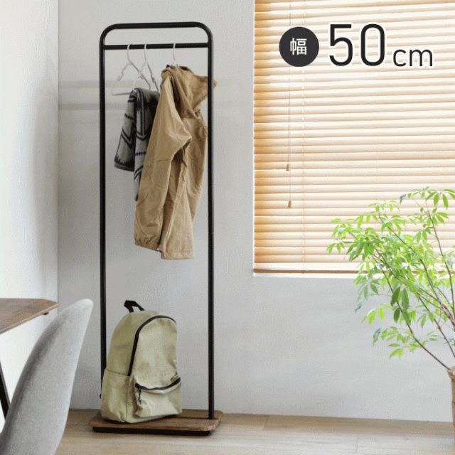 コートハンガー 幅50cm スリム 棚付き ハンガーラック スチール 頑丈 ラック スマート コンパクト スリム 棚板付き ポール パイプ ブラック ハンガー シンプル 玄関 おしゃれ 一人暮らし 洋服ラック 洋服掛け ブラウン 黒
