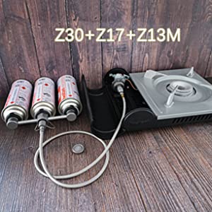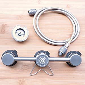 安価なカセットガス缶(CB)を並列に接続し、アウトドア缶(OD)口金に変換できるので、CB缶を使用するガスコンロのアダプタの形状をOD缶へ変換することによりOD缶を使用することも可能となります。
