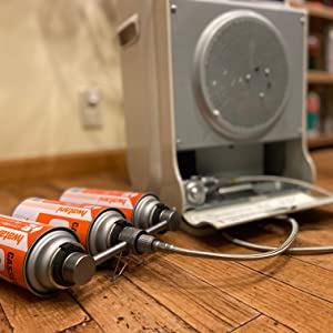 ガスホース等が別途併用することで、シングルバーナーやツーバーナー器機、風暖(ガスファンヒーター)などに使用可能、シーンに合わせた様々な使い方を楽しめることができます。