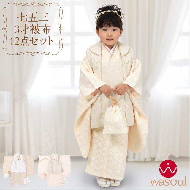 七五三 着物 3歳 フルセット 販売 袷用 WASOUL 被布セット 着付け小物付 モダン 花柄 髪飾り 被布 着物 襦袢 草履 巾着 足袋 小物 礼装 子供 女の子 女児 10022843