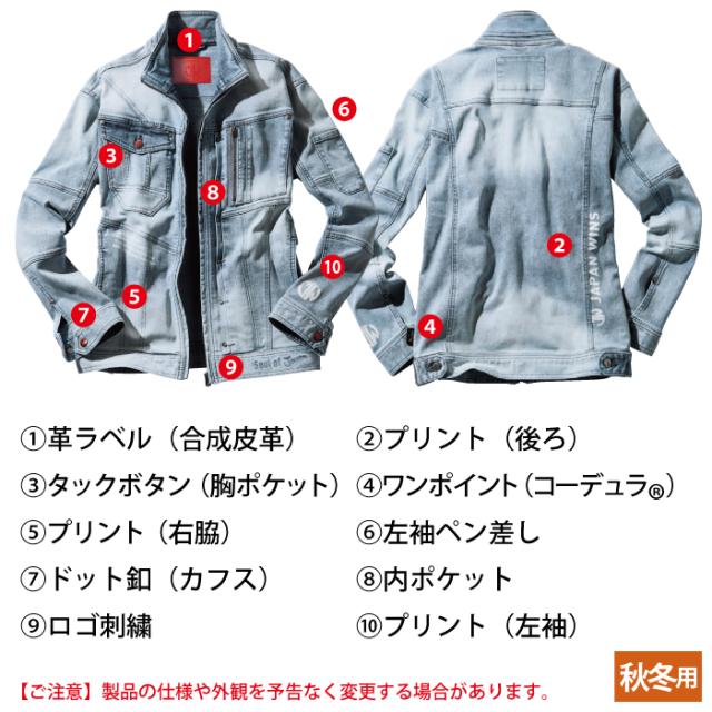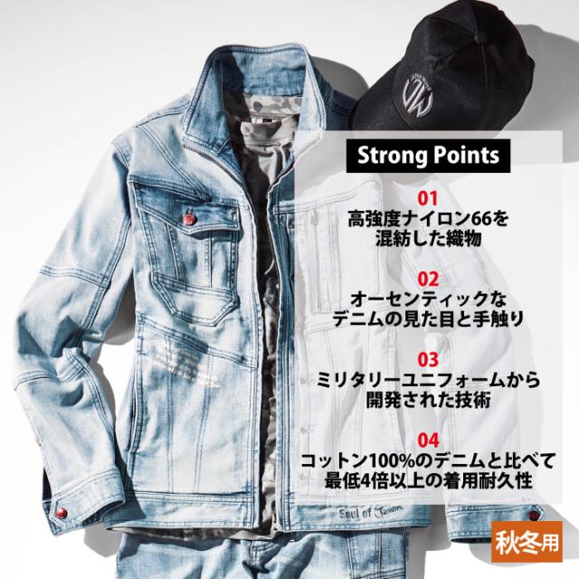 ◇高強度ナイロン糸を使用し、伸縮性に優れたJawinストレッチデニムのシリーズ。