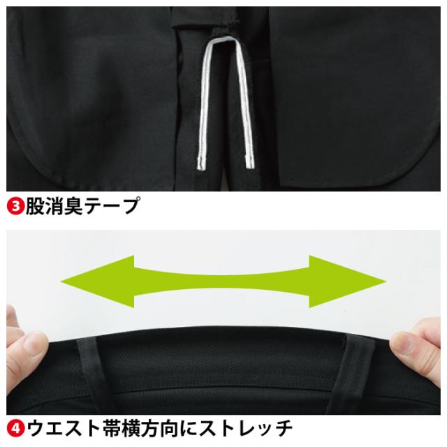 ◇機能:織りネーム、股消臭テープ、右前身ファスナーポケット、フレキシブルメッシュ、後ろ中心太ベルトループ、ウエスト帯横方向にストレッチ!