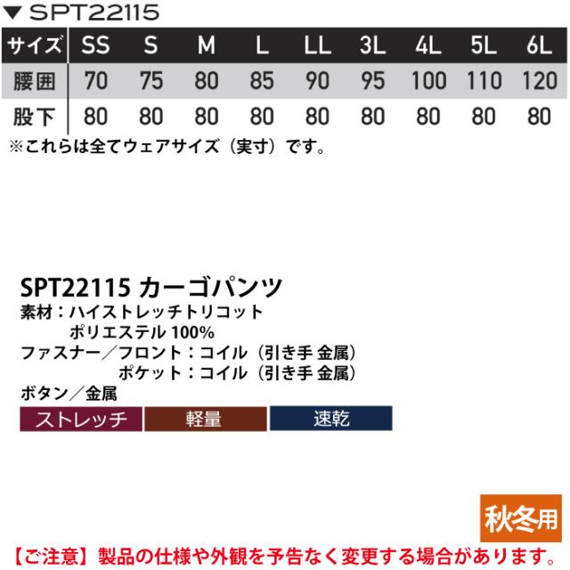 作業服 秋冬用 サンエス SPT22115 カーゴパンツ 4L〜6L