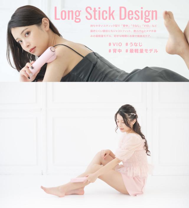持ちやすいスティック型で「背中」「うなじ」「VIO」など届きにくい部位にもジャストフィット。