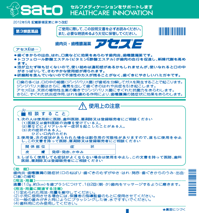 第3類医薬品 アセスE130g 佐藤製薬 歯肉炎 歯槽膿漏薬