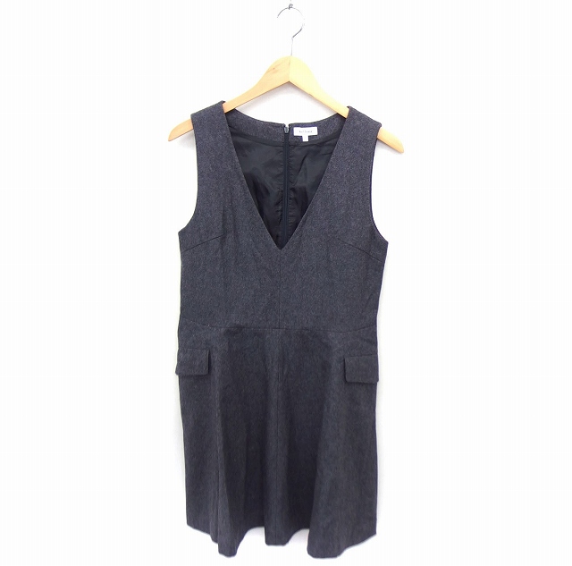 【中古】ヴェールダンス Vert Dense ワンピース ノーリーズ 深Vネック ひざ丈 フレア 無地 ウール 2 グレー /FT19