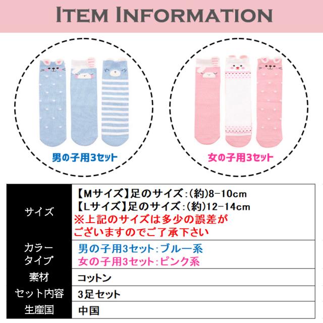 【ポップで可愛いアニマルデザインがおしゃれで可愛い♪ベビー用ソックス 3足セット】