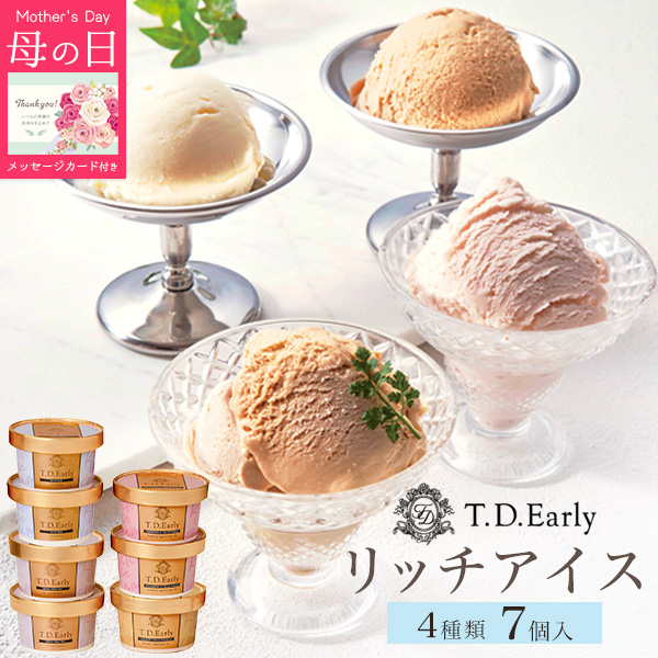 母の日ギフト 2026 T.D.Early リッチアイス 7個入り 4種 濃厚 リッチアイスクリーム アイスクリーム 詰め合わせ 母の日カード付 カップアイス 冷たいスイーツ 贈り物 母の日の贈り物 母親 お母さん ママ 予約販売 人気 送料無料 クール便【冷凍配送】