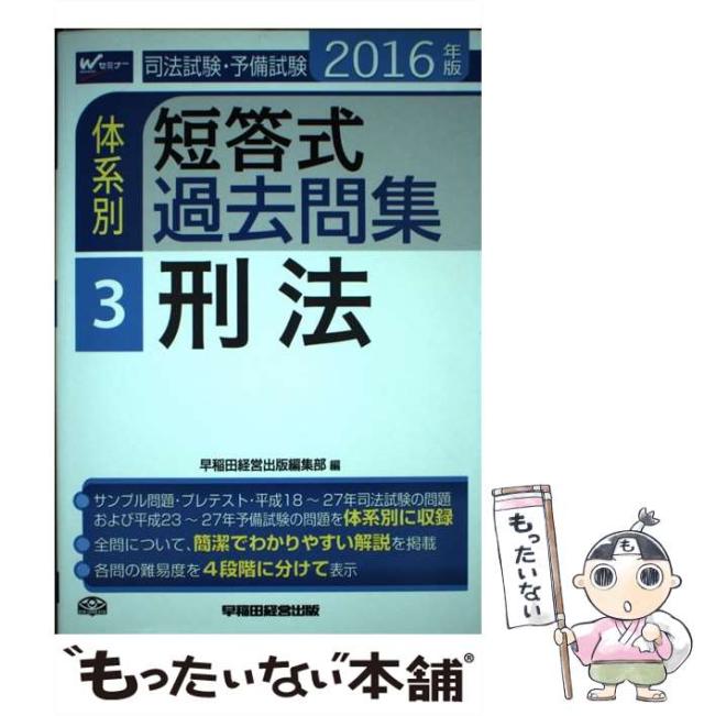 【中古】 司法試験・予備試験体系別短答式過去問集 2016年版3 刑法 / 早稲田経営出版 / 早稲田経営出版 [単行本(ソフトカバー)]【メール便送料無料】
