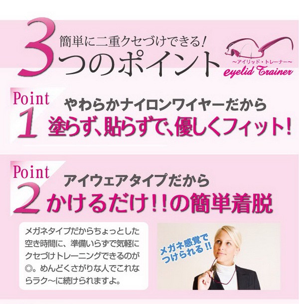 ダブルアイリッド・トレーナー 二重まぶたメガネ くせ付け 二重まぶた形成 メガネ型 ふたえ 二重瞼をつくる眼鏡 ![]() ![]() ![]()