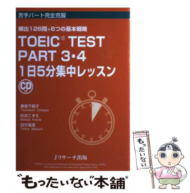 商品名:【中古】 TOEIC TEST PART 3・4 1日5分集中レッスン 苦手パート完全克服 頻出126問+6つの基本戦略 / 妻鳥千鶴子 松井こずえ 田平真澄 / Jリサーチ出版 [単行本]【メール便送料無料】