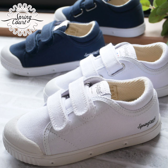 送料無料 キッズ ジュニア 男の子 女の子 スニーカー ローカット 人気 流行 定番 SPRING COURT G2 G2KV-V1 スプリングコート 子供靴 キャンバス ベルクロ 通園 通学 カジュアルシューズ 靴 ホワイト ミッドナイトブルー