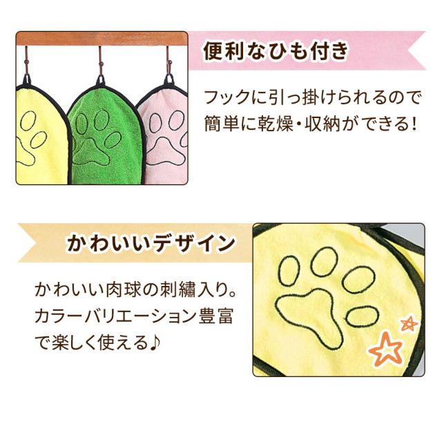 【MILASIC公式】ペットタオル 2枚セット ペット タオル 犬 猫 吸水性 吸水 通気性 速乾 乾きやすい 柔らかい ポケット シャンプー ドライヤー 時短 コンパクト ひも ひも付き フック 肉球 かわいい 刺繍 ステッチ グレー グリーン ブルー パープル ピンク イエロー TN-PTWL