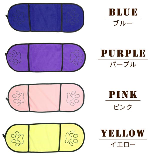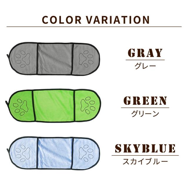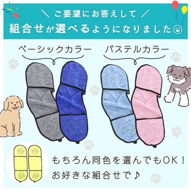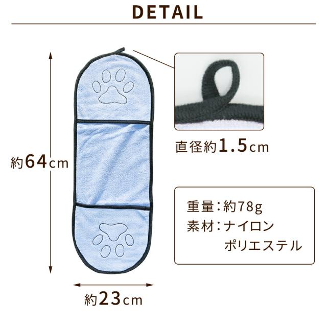 ペットタオル/2枚セット/ペット/タオル/バスタオル/犬/猫/わんちゃん/ねこちゃん/体拭き/吸水性/吸水/通気性/速乾/乾きやすい/柔らかい/ふわふわ/ポケット/お風呂/シャンプー/ドライヤー/時短/時間短縮/コンパクト/ひも/ひも付き/フック/肉球/かわいい/刺繍/ステッチ/プレゼント/グレー/グリーン/スカイブルー/ブルー/パープル/ピンク/イエロー/