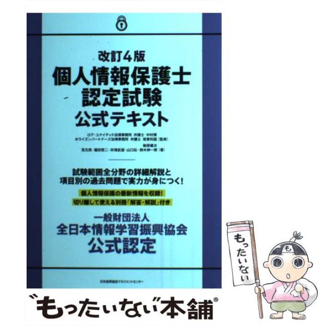 【中古】 個人情報保護士認定試験公式テキスト 一般財団法人全日本情報学習振興協会公式認定 改訂4版 / 中村博 坂東利国、柴原健次 克元亮 福田啓二 井 / [単行本]【メール便送料無料】